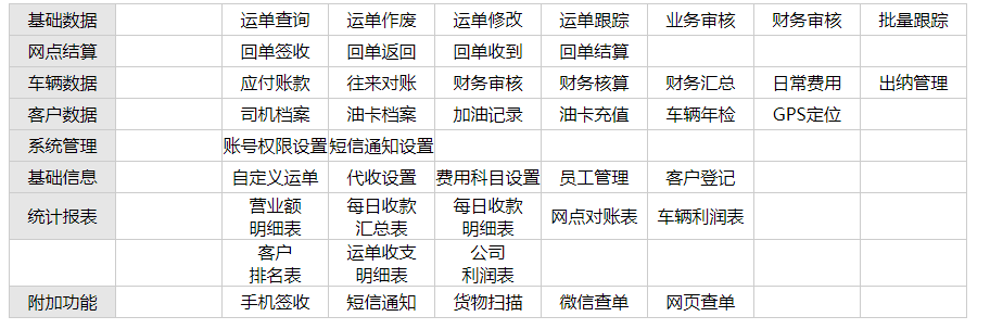 城乡共同配送子系统主要由基础管理、网点结算管理、车辆管理及客户管理四大功能模块